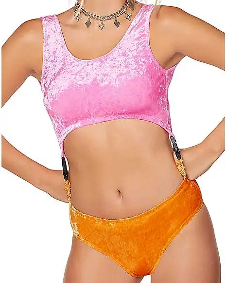 This velour bodysuit will have you feeling just like your favorite antihero. With pink and orange coloring, this bodysuit comes complete with functional clips that’ll allow you to attach or detach the two pieces for a look that is all your own. The sexy cut-out will show off your best assets and have you feeling sexy just like Harley Quinn!